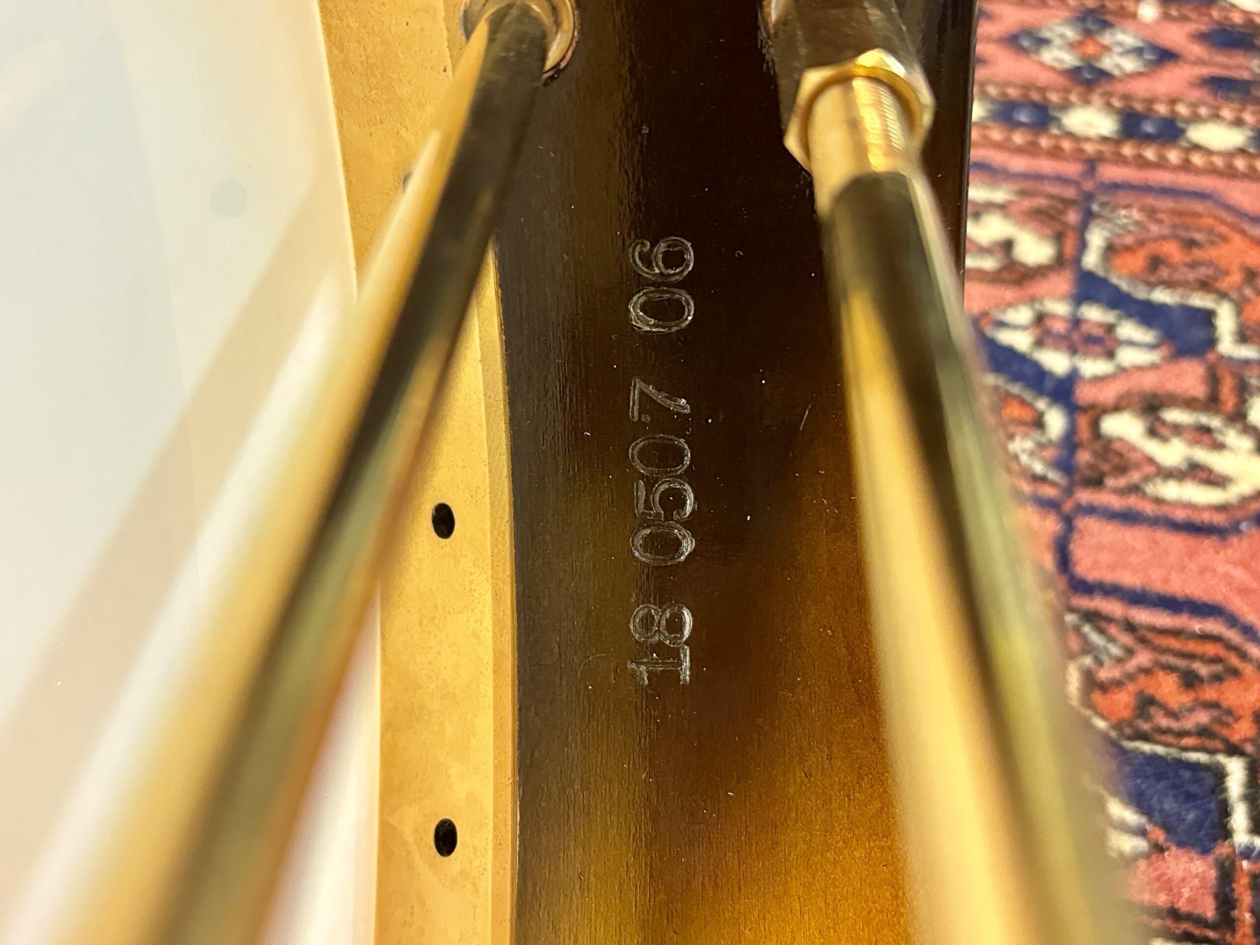 Although it’s in excellent condition, it did get played and has very minor wear on the armrest and railroad spikes under the 5th string at the 7th, 8th, 9th, and 10th frets. There is almost no finish or fret wear to be found and the gold plating shows little sign of tarnish.