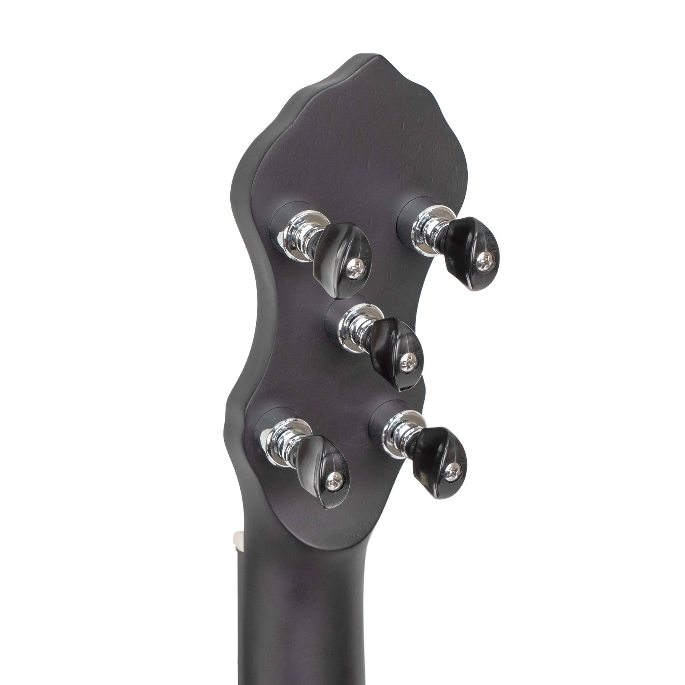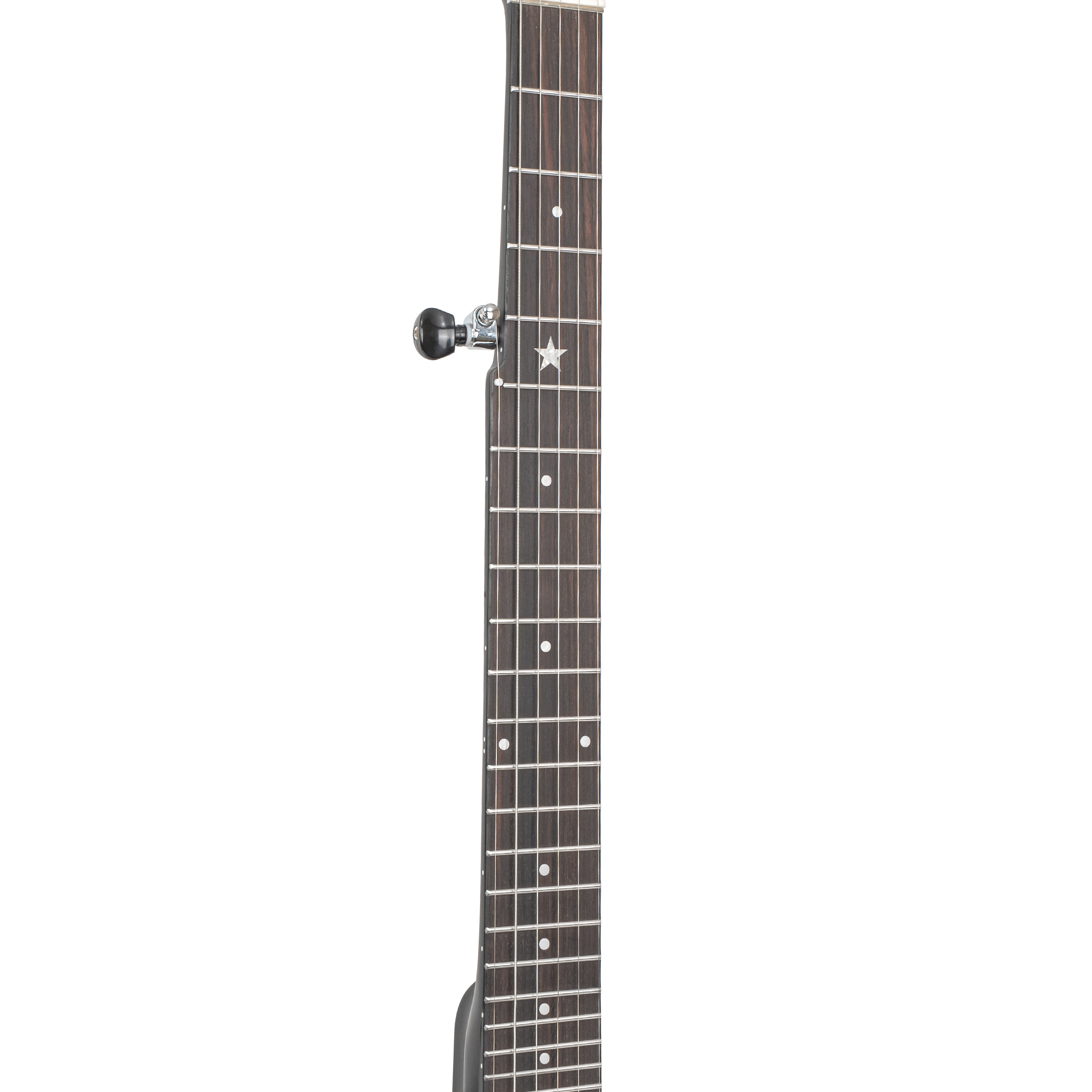 Like every banjo in Gold Tone’s AC series, the AC-5+1 is built around a 12-inch composite rim and resonator — a material choice that gives you surprising liveliness and projection while also being exceptionally stable across temperature and humidity changes. The nato neck carries a rosewood fingerboard with dot-and-star inlays, 18 frets, and a two-way adjustable truss rod, so the neck stays exactly where you set it. A ZeroGlide nut at 1-3/4″ width keeps intonation honest all the way up the neck, and Gold Tone’s planetary tuners hold pitch reliably — important when you’ve got six strings to keep in tune. The maple bridge with ebony cap, Remo LC Renaissance head, vintage tailpiece, and chrome hardware round out a package that punches well above its price. The satin black finish gives it a clean, understated look that feels right at home on a stage or at a jam.