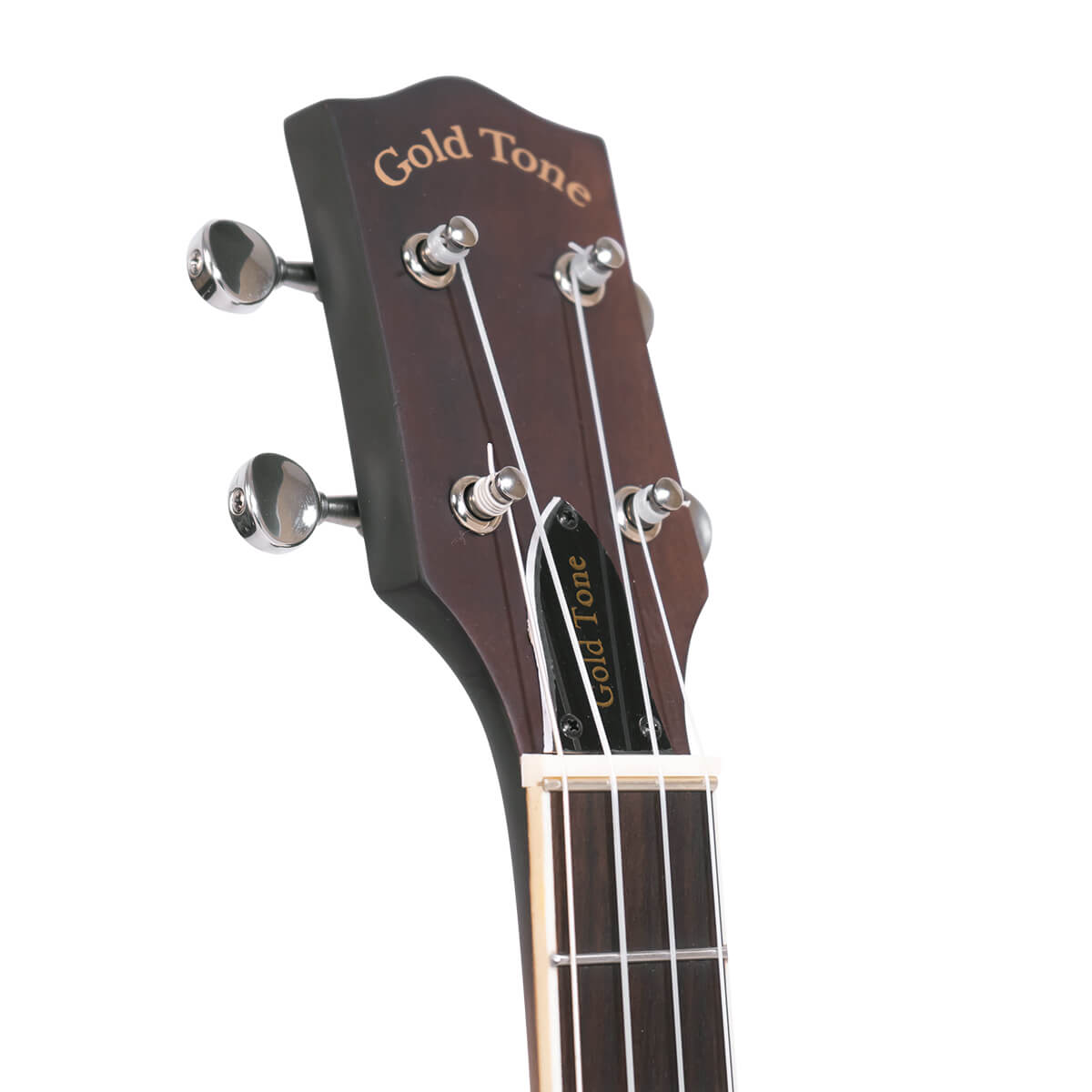The soprano, concert, tenor, and baritone models in Gold Tone’s banjo-uke lineup all use the same 8-inch maple pot assembly — what differs is the scale length of the neck. The baritone’s 19-inch scale is the longest of the four, which gives it a slightly deeper, fuller sound and the guitar-friendly DGBE tuning. The soprano and concert models use higher ukulele tunings (GCEA). The baritone is generally the easiest transition for guitarists, while the soprano and concert feel more at home for players coming from standard uke.