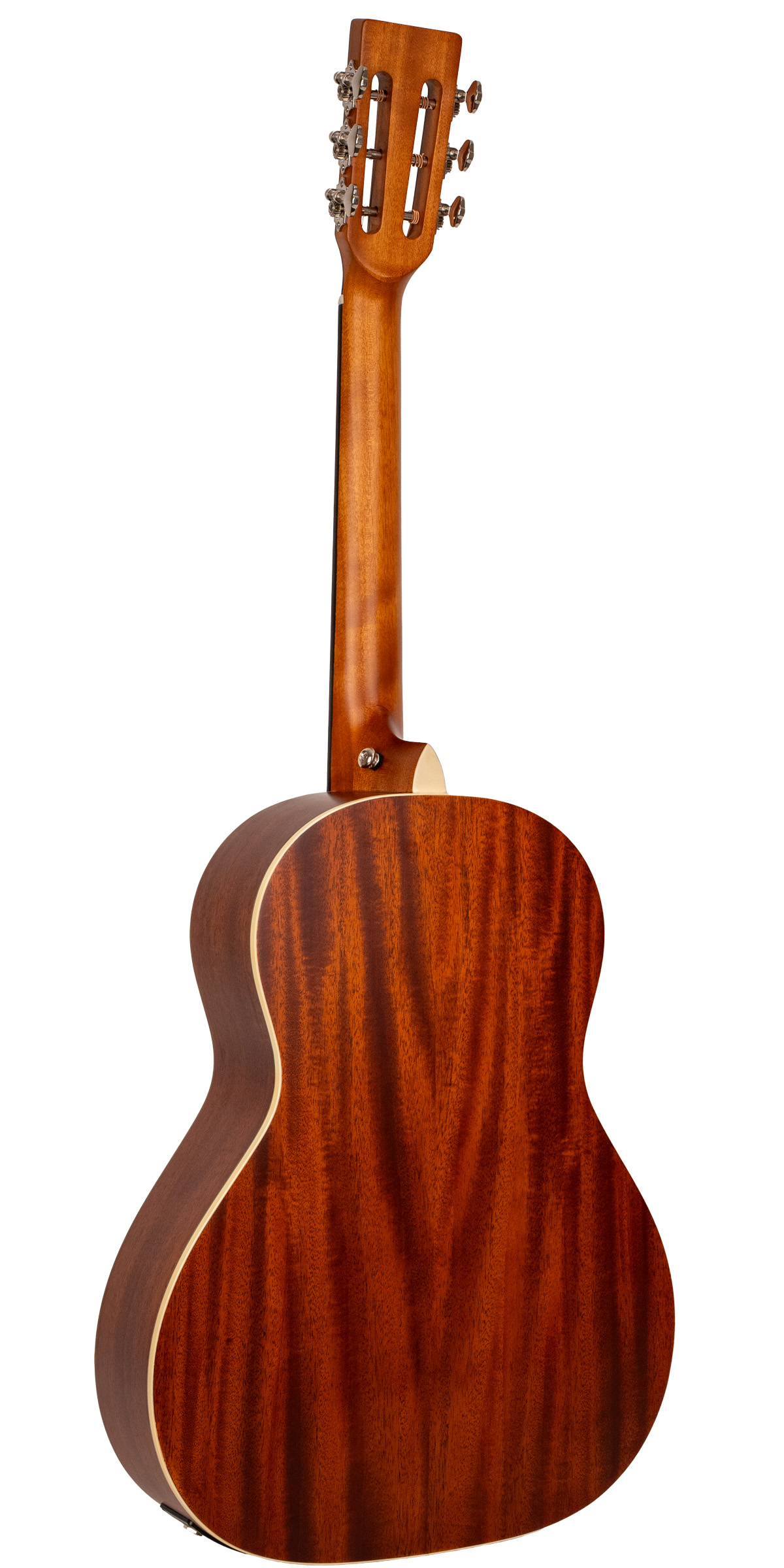 Absolutely — it’s one of the things this guitar does best. The smaller body focuses the tone into the midrange and keeps individual notes from getting lost in the mix, which is exactly what fingerstyle and fingerpicking players need. The solid spruce top responds quickly to a light touch, and the mahogany body adds warmth without muddiness. Whether you’re playing folk, blues, or classical-influenced fingerstyle, the Parlor’s voice suits the style naturally.