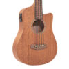 Construction is thoughtful throughout. The mahogany top pairs with okoume back and sides for a warm tonal character that complements those Thunderblack strings beautifully. The nato neck is fitted with a walnut fingerboard (also available fretless if that’s your preference — just reach out before ordering), dot inlays, and 20 frets, with a two-way adjustable truss rod so setup can be dialed in precisely. The 1-11/16″ bone nut, butterfly bass-style tuners, and all-black hardware give it a clean, purposeful aesthetic in a natural satin finish. The onboard MBass Preamp with EQ means you can plug straight into any PA, amp, or interface and get a balanced, usable sound immediately. The included gig bag keeps it protected on the road.