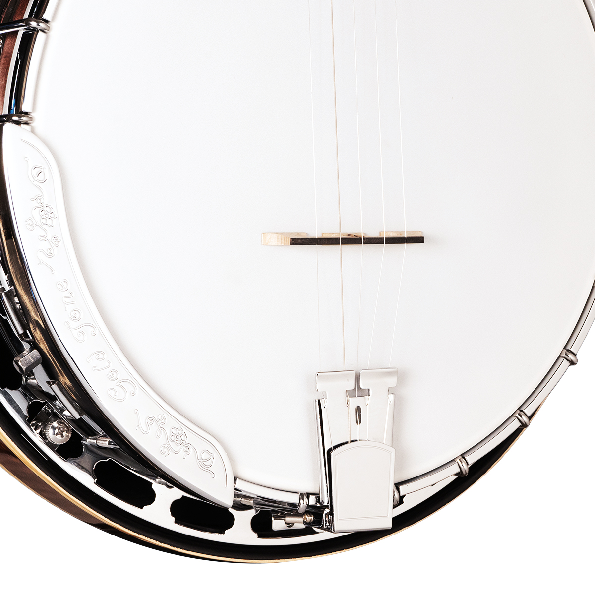 Beyond the tone ring, the OB-250+/L is built with the kind of materials and hardware that belong on instruments costing considerably more. The curly maple neck wears an ebony fingerboard with the classic hearts-and-flowers inlay pattern, 22 frets, and a 1-3/16″ ZeroGlide nut that keeps the action clean and buzz-free at the low end of the neck. Gotoh planetary tuners hold pitch reliably under hard picking. The 14″ flame maple resonator, one-piece cast flange, and chrome-plated hardware give the instrument a visual elegance that matches its sonic character. The Remo Hydra-Coated head, Presto tailpiece, and Sampson BG bridge complete a pot assembly that’s tuned to respond — whether you’re rolling hard Scruggs style or pushing into melodic territory. Having spent over 45 years around bluegrass banjos, including co-designing the OB-Standard with Gold Tone, I can tell you that what Jim Stull accomplished with the JLS #12 ring is genuinely remarkable. This instrument sounds like it belongs in a much higher price bracket.